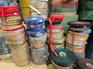 Lote de cintas de costura de diferentes colores y materiales. - Cintas de tela para manualidades y confección. - Variedad de colores disponibles. - Ideal para proyectos de costura y decoración.