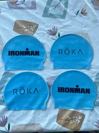 Lote de 4 gorros de natación Ironman, de la marca Roka. Todos son de color azul. -.Roka - Ironman.