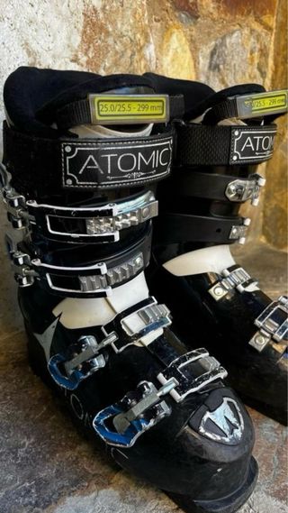 Botas de esquí Atomic en color negro. Mujer. En buen estado. Ideales para nivel principiante intermedio. - Talla 25.0/25.5 (299 mm). - Modelo Atomic Hawx 70 - Cierres de hebilla metálica. - Color negro y azul