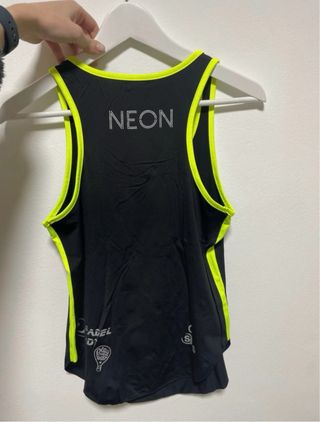 Camiseta de tirantes NEON negra con ribetes de color amarillo. No se ha utilizado.