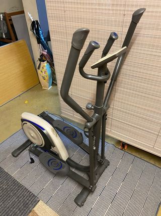 Bicicleta elíptica electrónica de la marca Domyos. Diseñada para un entrenamiento cardiovascular completo. - Estructura metálica. - Pedales ergonómicos. - Manillar con agarres acolchados. - Pantalla digital para seguimiento de datos.