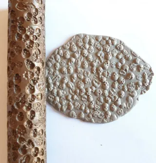 Rodillo para crear texturas de calaveras en arcilla o masa. - Diseño detallado de calaveras.