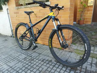 Bicicleta de montaña en perfecto estado, lista para rodar. - Cuadro de aluminio. - Tija telescopica - Ruedas Maxxis Ardent tubeless - Frenos de disco hidráulicos. - Cambio Shimano. - Talla M. - 14 kg - 140 mm suspensión delantera