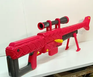Nerf Roblox Zombie Attack diseño de serpiente - Color rojo vibrante. - Incluye mira telescópica. - Empuñadura y culata en color negro.
