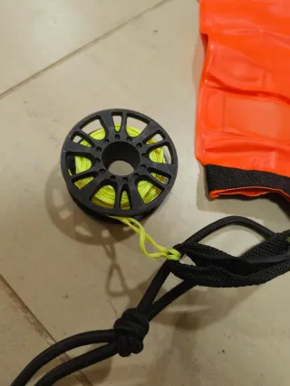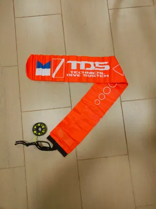 Boya de buceo de color naranja brillante de 1,20m ideal para señalización en inmersiones. Incluye un carrete con hilo para desplegarla. - Marca: TDS Technical Dive System. - Color: Naranja. - Material: Tejido resistente. - Incluye carrete con hilo 20m La boya es de 1,20m
