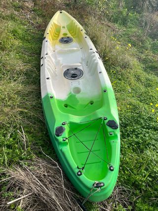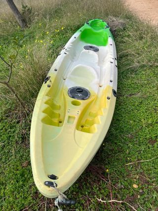 Kayak doble sit on top. Autovaciable. Para 2 personas y se puede llevar también un niño en medio. Mas modelos el precio puede variar un poco dependiendo del modelo o si se incluyen remos, asiento respaldo, chalecos salvavidas.