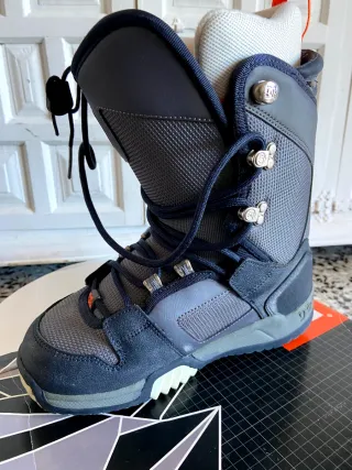 Botas de snowboard DC Shoes en color gris y azul marino. - Cierre con cordones. - Detalle de logo DC SHOECOUSA en el lateral. - Tirador naranja en la parte superior.