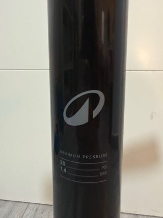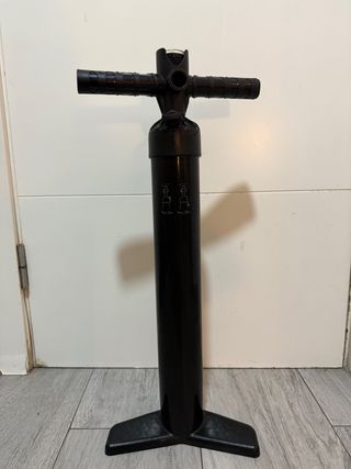 Inflador de mano en color negro, diseñado para inflar tablas de paddle surf o kayaks. - Doble acción alta presión 0-20 PSI - Mango ergonómico para un agarre cómodo. - Base estable para facilitar el inflado. - Construcción robusta para mayor durabilidad. Usado una sola vez. Vino con el kit del paddle.