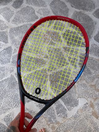 Raqueta de tenis Yonex Vcore 98. G3 - Modelo 2023. - Peso de 305g. - Patrón de encordado 16x19. Yonex pro tour strings 23kg /22kg
