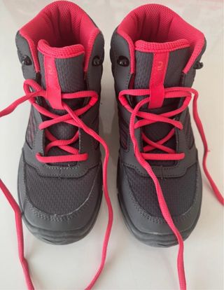 Botas de montaña Quechua para niña en color gris y rosa. - Cierre con cordones. - Caña alta para mayor sujeción. - Suela de goma. - Perfectas para senderismo y actividades al aire libre.