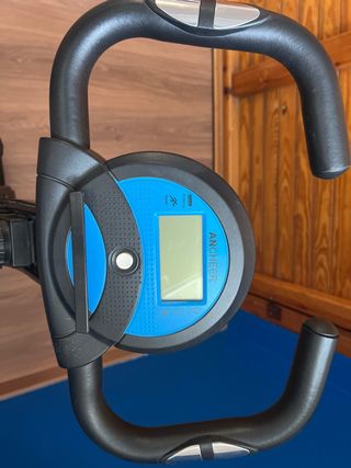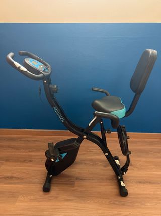 Bicicleta estática plegable de la marca ANCHEER, ideal para entrenar en casa. Su diseño permite guardarla fácilmente. - Estructura metálica resistente. - Asiento con respaldo. - Pantalla digital.