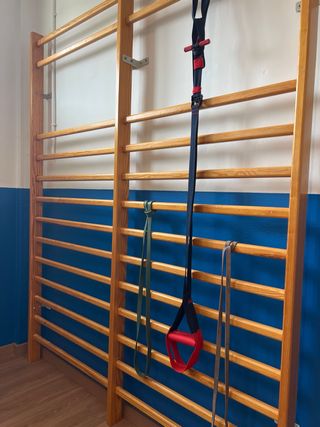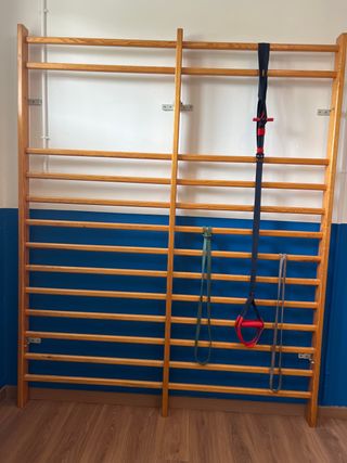 Espaldera profesional de madera, ideal para gimnasios o uso doméstico. - Construcción robusta de madera. - Diseño clásico de barras.