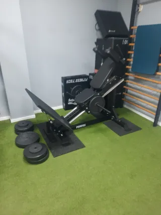 Máquina de musculación para entrenar las piernas. Se vende junto con los pesos, NO POR SEPARADO. Está en perfecto estado, muy poco uso.