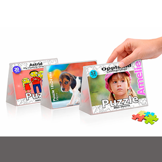 Crea tu propio puzzle con la imagen que prefieras. Ideal para regalar o para tener un recuerdo único. En caja totalmente personalizada. Formatos disponibles: 18x24cms 12 o 20 o 30 piezas 27x36cms 60 o 120 o 240 piezas Mismo precio para todos los formatos. PLAZO DE ENTREGA 24 HORAS Posibilidad de envío o recogida en tienda altapuzzle. Envía email a contact@altapuzzle.com con la imagen que deseas para el puzzle especificando el formato y el número de piezas y un título para poner en la caja (opcional). O envÍa lo mismo por whatsapp al 629 629 999. Te responederemos con los detalles.