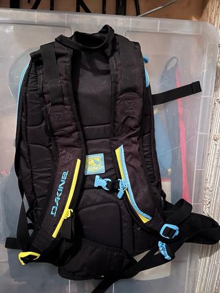 Mochila Dakine Heli Pack de 12 litros, ideal para esquí y snowboard. Diseño en color negro con detalles en amarillo y azul. - Compartimento principal espacioso. - Bolsillo frontal de acceso rápido. - Correas de sujeción para esquís o tabla. - Espalda y tirantes acolchados para mayor comodidad.