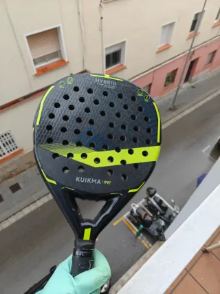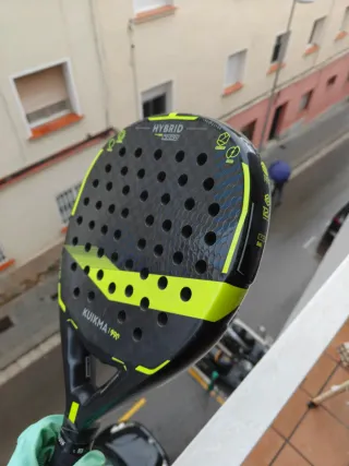 Pala de pádel Kuikma 990 con acabado Hybrid Hard. - Diseño en negro y amarillo. - Superficie con puntos para mayor agarre. - Protector en la parte superior.
