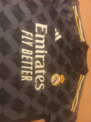 Preciosa camiseta del Real Madrid de la temporada 2023-2024. Segunda equipación - Diseño elegante en negro con detalles dorados. - Talla S. Mujer - En perfectísimas condiciones. Sólo me la he puesto una vez