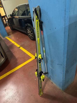 Esquís de la marca Rossignol. - Fijaciones de color amarillo. - Diseño deportivo. - 1.55 cm de altura.