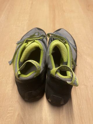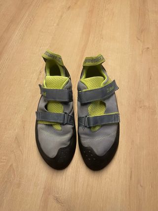 Pies de gato de la marca Simond, talla 43. Diseñados para escalada. - Cierre con velcro. - Suela de goma. - Color gris y verde lima. Son de mi hijo que los ha usado 3 veces y ya lo le caben....