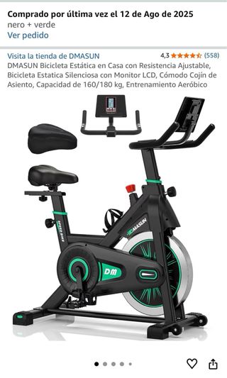 Bicicleta Estática DAMASUN con Resistencia Ajustable, Bicicleta Estatica Silenciosa con Monitor LCD, Cómodo Cojín de Asiento, Capacidad de 160/180 kg, Entrenamiento Aeróbico. Se vende por lesión. Recién comprada