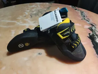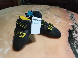 Pies de gato Scarpa Vapor V en color negro y amarillo. Nuevos a estrenar, con etiquetas y caja original. Talla 41. - Cierre con velcro. - Diseño deportivo.