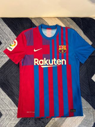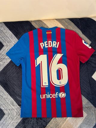 Camiseta oficial del FC Barcelona de la temporada 2021/2022, edición jugador con el dorsal 16 de Pedri y el parche de La Liga. Se ha usado muy pocas veces para ir al Camp Nou.