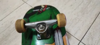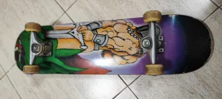 Skate con un diseño llamativo de un guerrero con espada. - Tabla con ilustración colorida. - Ruedas y ejes metálicos.