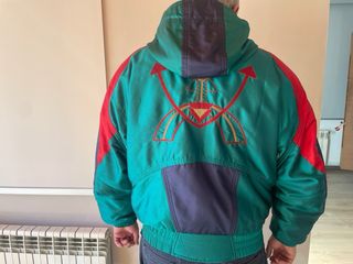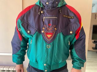 Chaqueta de esquí Descente con un diseño multicolor y detalles bordados. Calidad Descente y de alta gamma. Tiene sus años pero casi sin uso, estado como nueva, impecable. Logo de Descente bordado en la manga. - Bolsillos frontales con cremallera y solapa. - Capucha integrada que ae puede sacar con cremallera. Todas las cremalleras estan en impecable estado. Opcion de comprar pantalones a juego, el pantalon esta como nuevo solo hay un desgaste en los protectores internos donde solapan las botas de esqui. El estado general es muy bueno no se notas el paso del tiempo. En su momento costo 1400€
