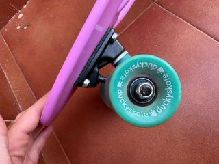 Monopatín tipo penny board de color púrpura. Ideal para desplazamientos cortos y trucos básicos. MARCA: duckyskate. NO SE HA USADO NUNCA!!!!!!! me lo regalaron hace años y nunca he sabido utilizarlo, está sucio de acumular polvo por el no uso........ (para las fotos no está limpio). negociable!