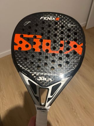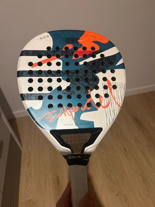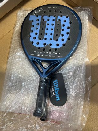 Pala de pádel Wilson Endure Pro, firmada por el jugador Momo González. Me tocó en un sorteo del Premier Pádel en Barcelona. Escucho ofertas - Pala de pádel Wilson Endure Pro. - Firmada por Momo González.