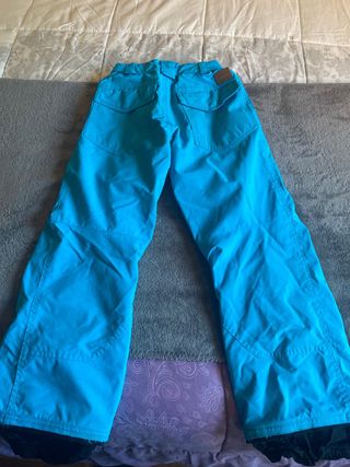 Pantalón de esquí de color azul brillante, ideal para la montaña. Diseñado para ofrecer comodidad y protección. - Dos bolsillos traseros con solapa. - Etiqueta de marca en la parte trasera superior. - Costuras reforzadas en las piernas.