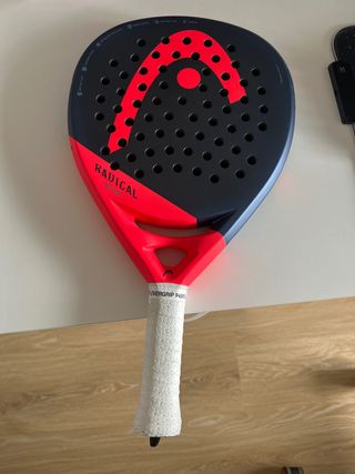 Pala de pádel Head Radical Motion en color negro y rojo, modelo 2025. Diseñada para un juego dinámico y potente. - Superficie con acabado mate. - Marco de carbono. - Empuñadura con overgrip.
