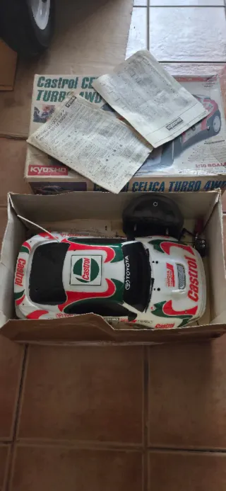 Coche radiocontrol Kyosho Castrol Celica Turbo 4WD a escala 1:10 Se vende coche RC de la marca Kyosho Toyota Celica, el coche tiene bastantes años y se le ha dado bastante caña, arranca bien pero tiene algunos fallos, pieza de colección vintage de los 90 Se escuchan ofertas (no muy absurdas porfavor, solo en metálico, no cambios) - Réplica del coche de competición. - Diseño deportivo con patrocinadores. - Marca: Kyosho