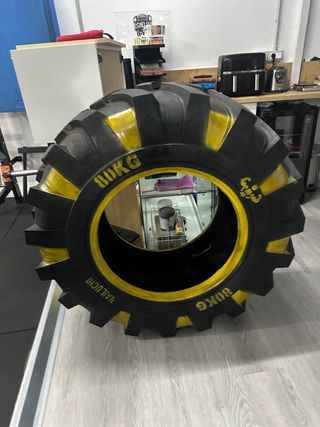 Rueda de tractor de 80kg, ideal para entrenamiento de fuerza y acondicionamiento físico. - Diseño robusto y duradero. - Marcada con 80KG.