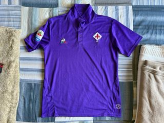 Camiseta polo de fútbol del ACF Fiorentina de la temporada 2018/19. - Color morado. - Talla M. - Logo del club bordado en el pecho. - Parche de la Serie A TIM en la manga.