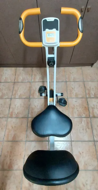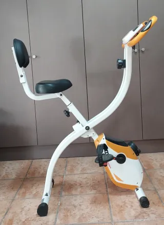 Bicicleta estática de alta calidad, completamente nueva y sin uso. - Diseño moderno en blanco y naranja. - Asiento con respaldo. - Manillar ergonómico.