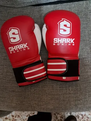 Par de guantes de boxeo de la marca Shark en color rojo. - Diseño con logo blanco de Shark. - Cierre de velcro. - Detalles de rayas blancas en la muñeca.