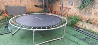 Cama elástica circular para uso en exteriores. Ideal para diversión en el jardín. - Estructura metálica. - Superficie de salto negra. - Resortes de sujeción.