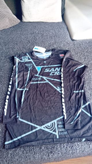 Camiseta de manga larga de la marca Santa Cruz. - Diseño con líneas geométricas en contraste. - Logo de Santa Cruz en el pecho. - Estampado FOR THE WORLD'S FASTEST RACERS en la parte inferior. - La camiseta negra es nueva a estrenar.