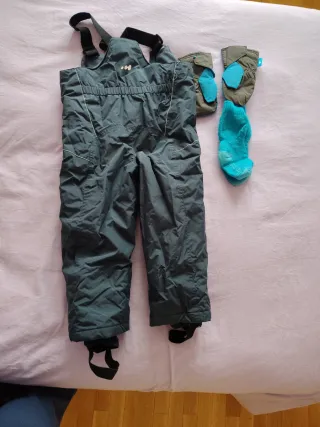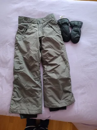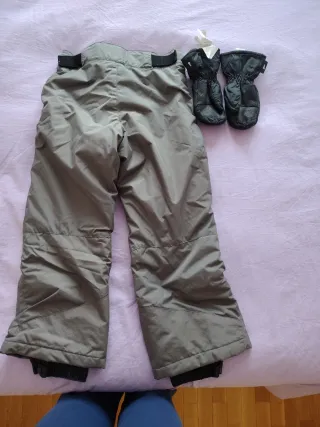Pantalón de esquí y manoplas grises Talla 8.años