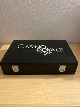 Maletín de póker oficial y limitado de la película de James Bond Casino Royale. -Diseño negro elegante y cierre metálico. -Fichas de casino de una calidad excepcional. -2 Barajas de cartas de muy buena calidad. En conclusión, es un maletín metálico de buen peso, que incorpora fichas y barajas de poker de muy buena calidad para divertirse y hacer una oda al mundo de James Bond mientras degustamos un Vesper Martini.
