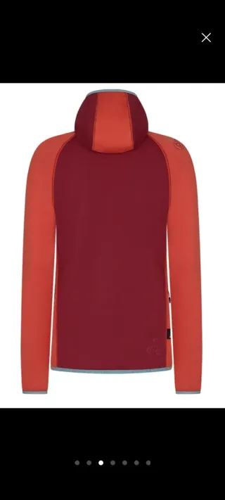 Chaqueta de la marca La Sportiva, con un diseño moderno y funcional. De chica y talla M - Color naranja y fucsia. - Con capucha. - Cierre de cremallera.