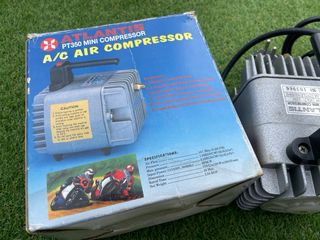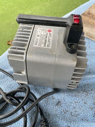 Compresor de aerografía ATLAN modelo PT350. - Potencia de salida: 56W. - Voltaje AC. - Número de serie: 103966.
