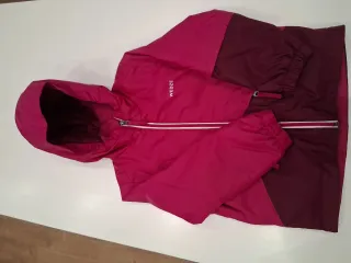 Conjunto de esquí para niña de la marca Wedze, ideal para disfrutar de la nieve. - Chaqueta rosa y granate con capucha. - Pantalón negro. - Cremallera frontal. - Guantes