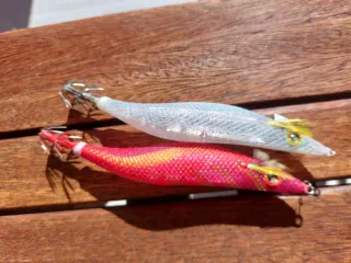Se venden dos jibioneras Eging de la marca Eginno, modelo 3.5. - Color: una es K-Mura y la otra es Clear Body. - Tamaño: 3.5 / 18g. - Longitud aproximada: 3.2m.