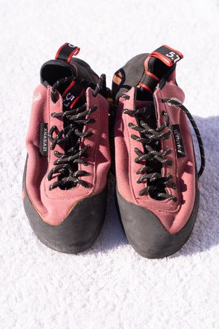 Pies de gato Five Ten Anasazi W en color rosa. Goma C4 Stealth, original. Suela en buen estado. No resolados. Talla 38. Cierre con cordones.