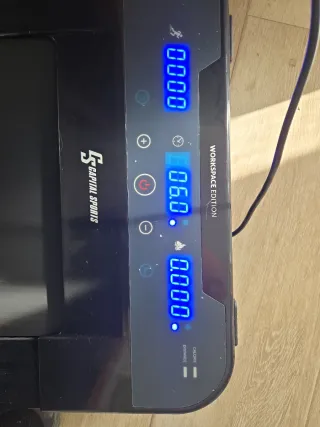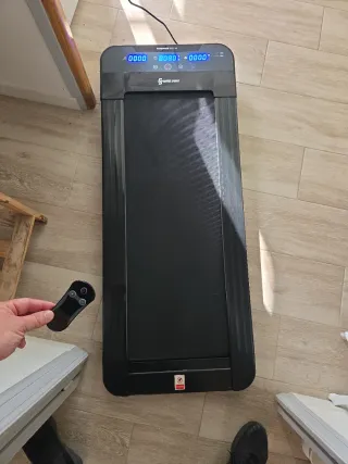 Cinta de correr compacta y fácil de guardar. (Tengo aun la caja original con un lado abierto que es como se ha estado guardando además de con la funda plástica que la cubre) Se vende por desuso completo, se compro en 2021 y se habrá usado unas 10 veces. - Pantalla digital con información: *Velocidad: 6km/h máximo *Tiempo de actividad *Pasos hechos - Incluye mando a distancia, llave Allen para zona de lubricacion y manual en castellano.