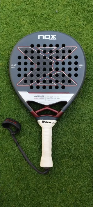 Pala de pádel NOX AT10 Genius 12K del año 2025. Diseño con acabado mate, rugoso arenoso y 3d en el centro. Incluyo la bolsa y las gomas "custom grip". - Ni un rasguño, prácticamente nueva. Tiene un entrenamiento y dos partidos. - Superficie de fibra de carbono 12K. - Núcleo de goma HR3 (medio). - Marco de carbono. - Peso con protector de 360g.