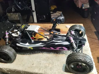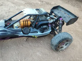 Coche radiocontrol HPI Baja a escala 1/5. - Diseño deportivo en negro con detalles morados. - Ruedas todoterreno de gran tamaño. - Chasis robusto y suspensiones gas Gasolina 2T No se negocia No se envía Solo mallorca