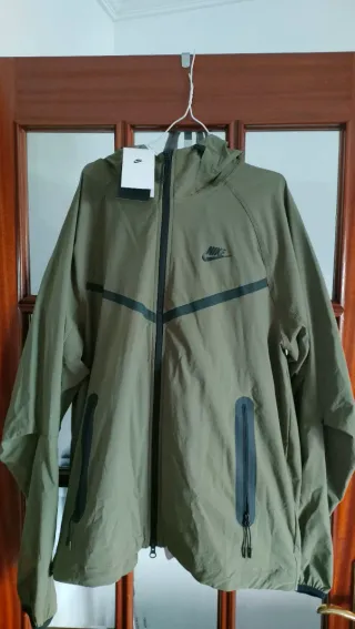 Cortavientos Nike en color verde militar. Es una talla S que talla como una M. - Diseño moderno con detalles en negro. - Cremallera frontal completa. - Bolsillos laterales con cremallera.